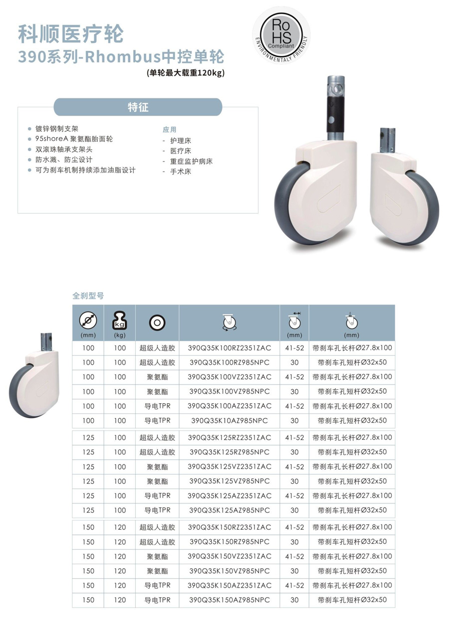 医疗轮 398系列-Rhombus铝合金中控单轮