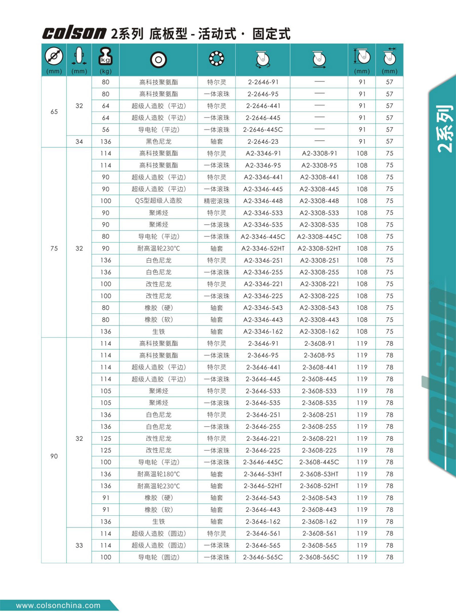 2系列-底板型-活动式/固定式脚轮
