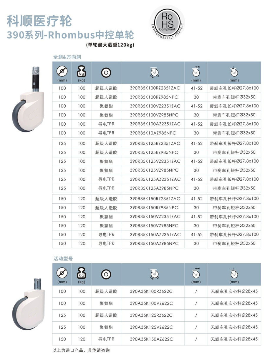 医疗轮 398系列-Rhombus铝合金中控单轮