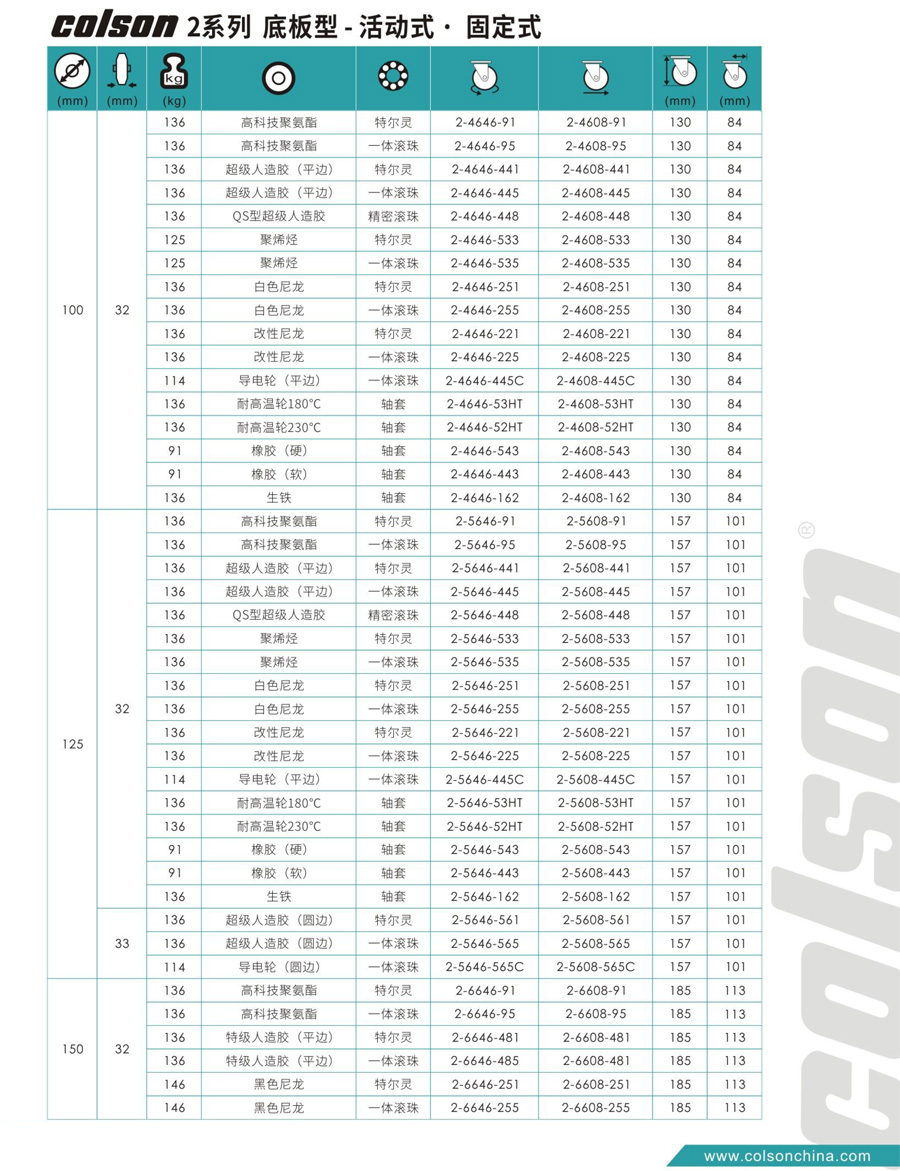 2系列-底板型-活动式/固定式脚轮