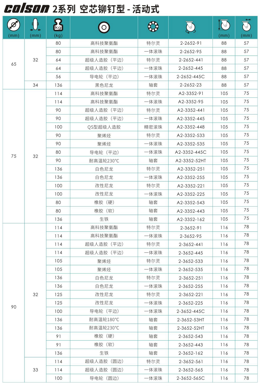 2系列-空芯铆钉型-活动式脚轮